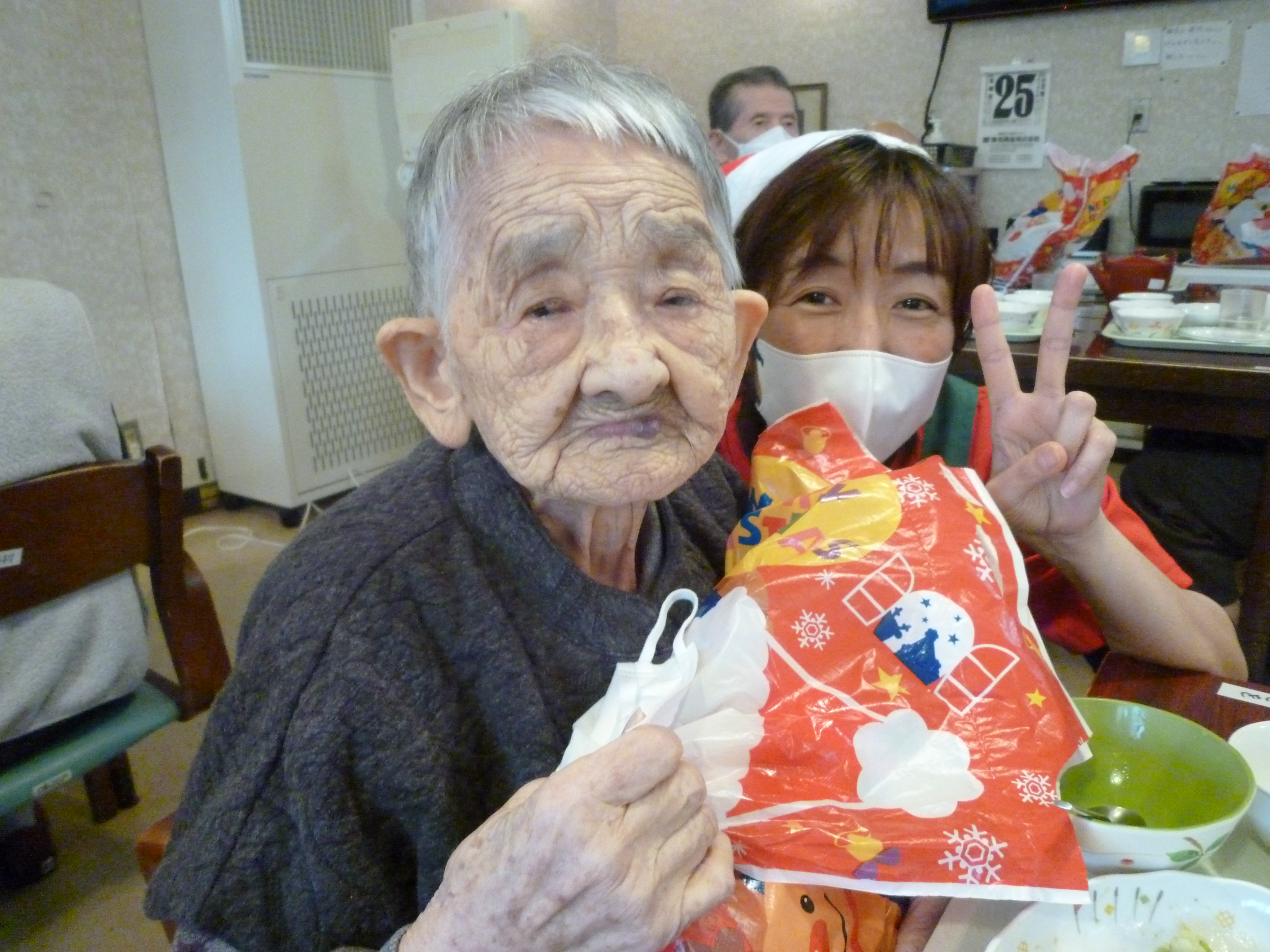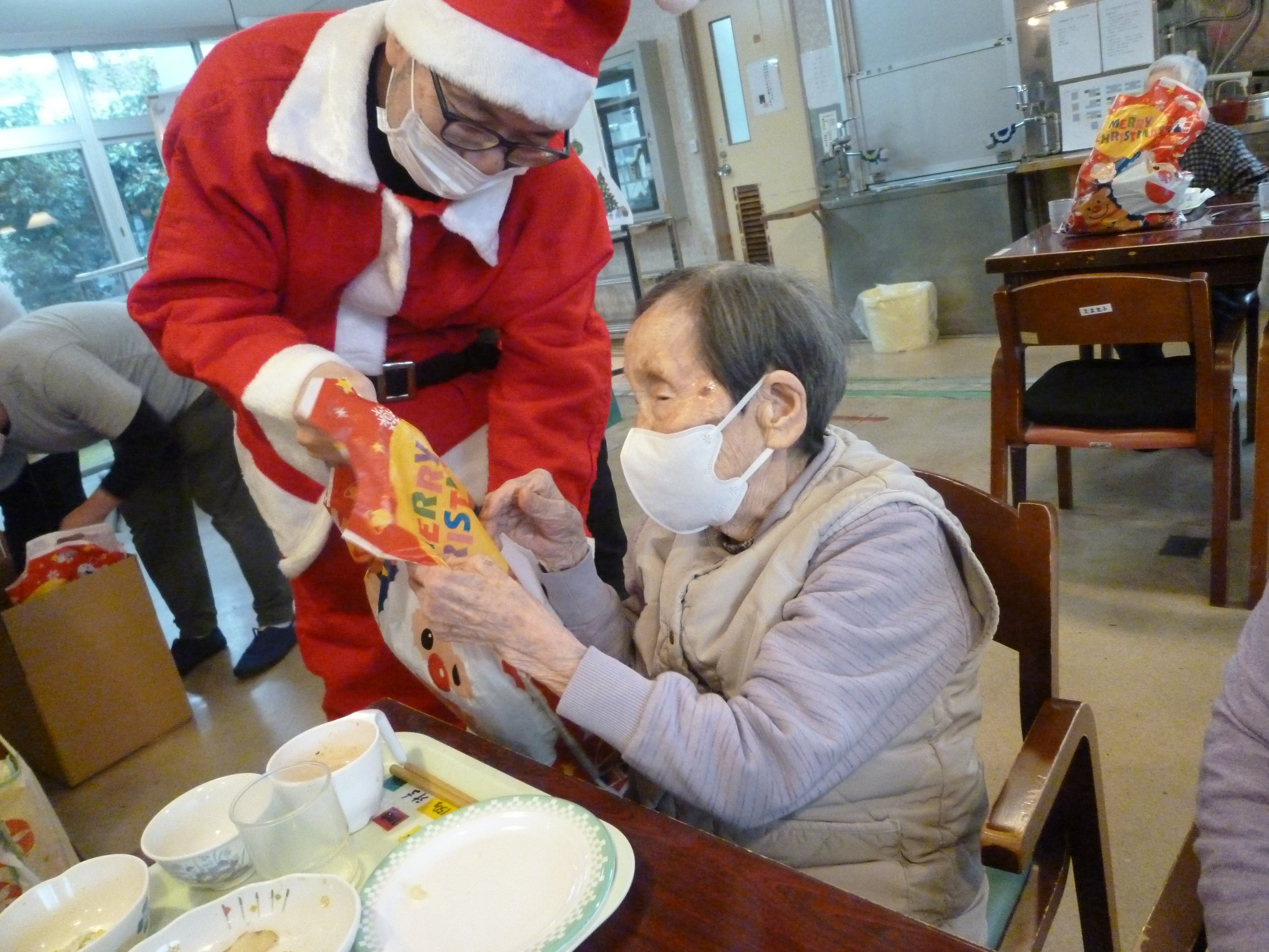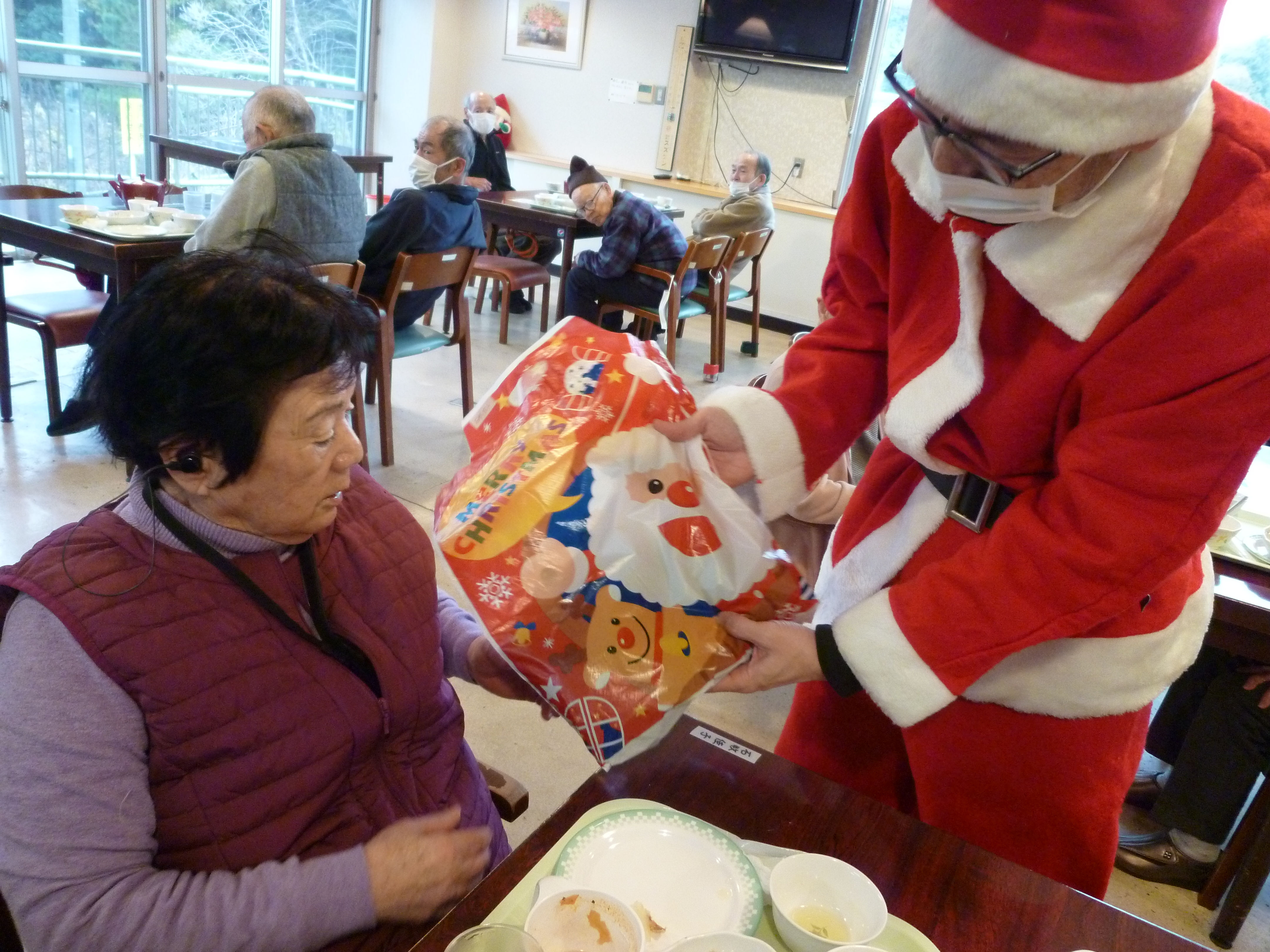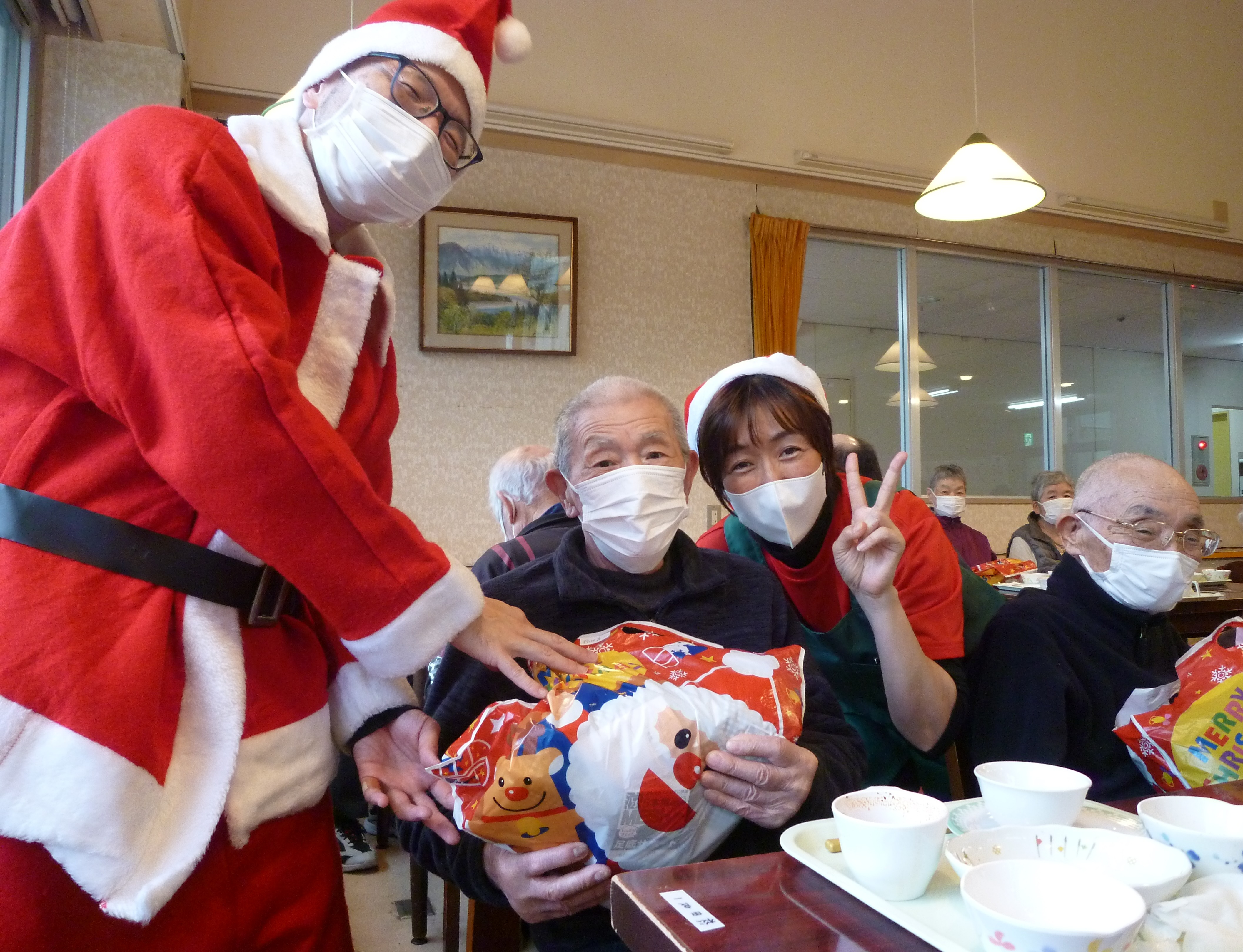 クリスマス会 12/25 奥山老人ホームではクリスマス会を行いました!🎄🔔 今年も施設長がサンタとなり、入所者様へ笑顔とプレゼントを配りました!🎅 プレゼントには静岡県共同募金会 NHK歳末たすけあい助成を利用させていただきました! ありがとうございました!