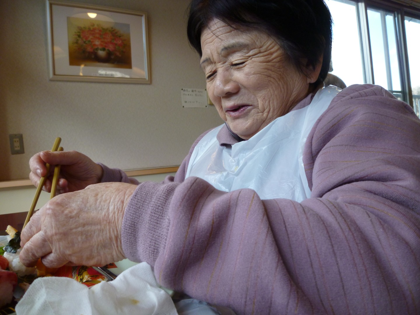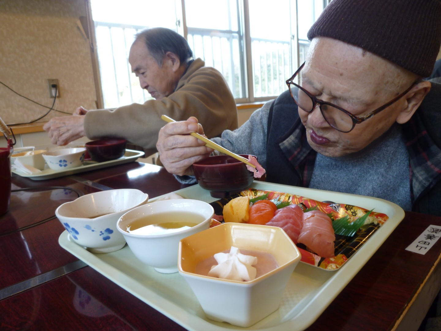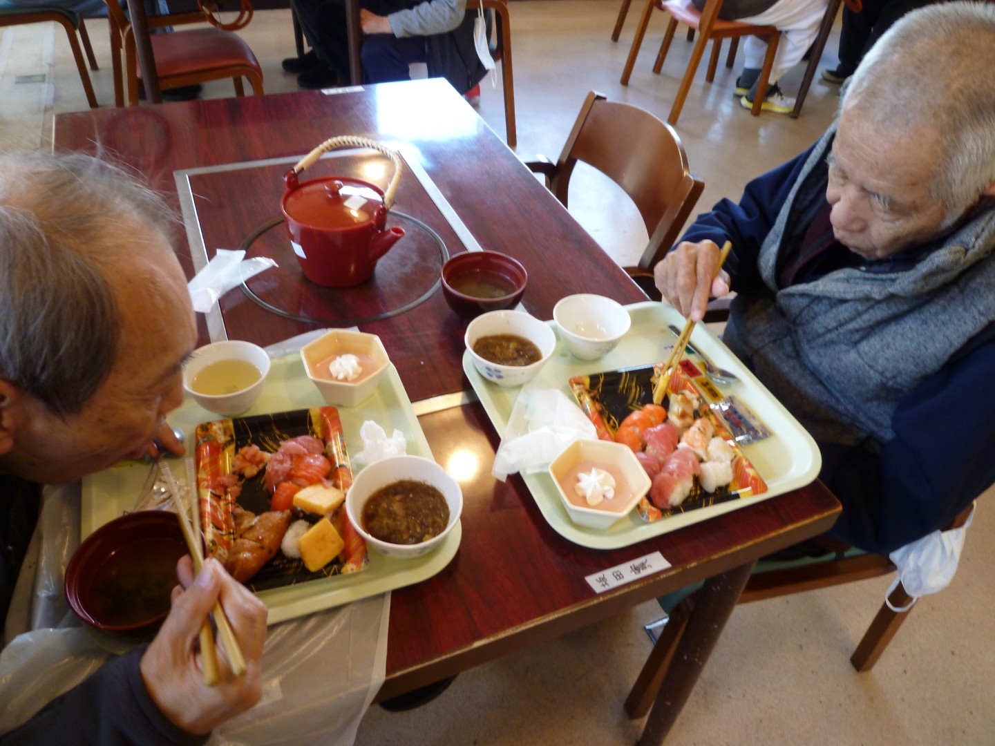 奥山老人ホーム 新年会 奥山老人ホーム 新年会を行いました!😊 入所者様の昼食としてお寿司の提供を行いました🍣 お寿司の提供に関し、静岡県共同募金会 NHK歳末たすけあい助成を利用させていただきました! ありがとうございました!
