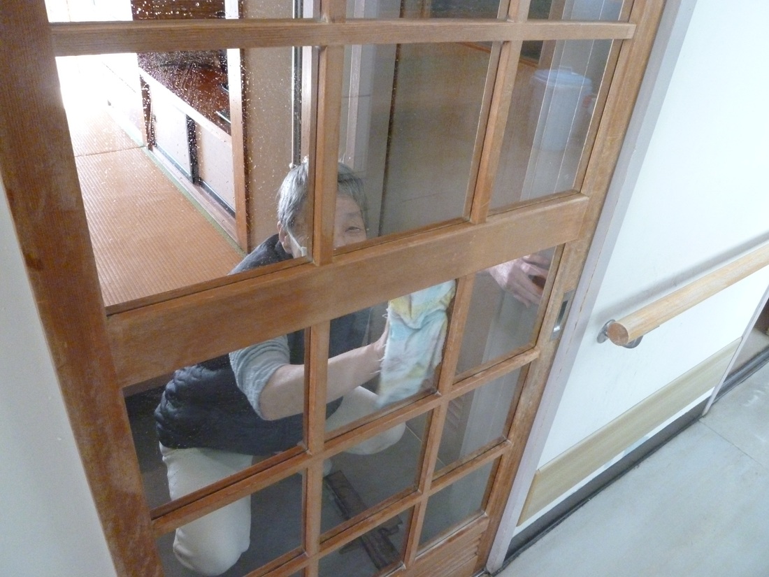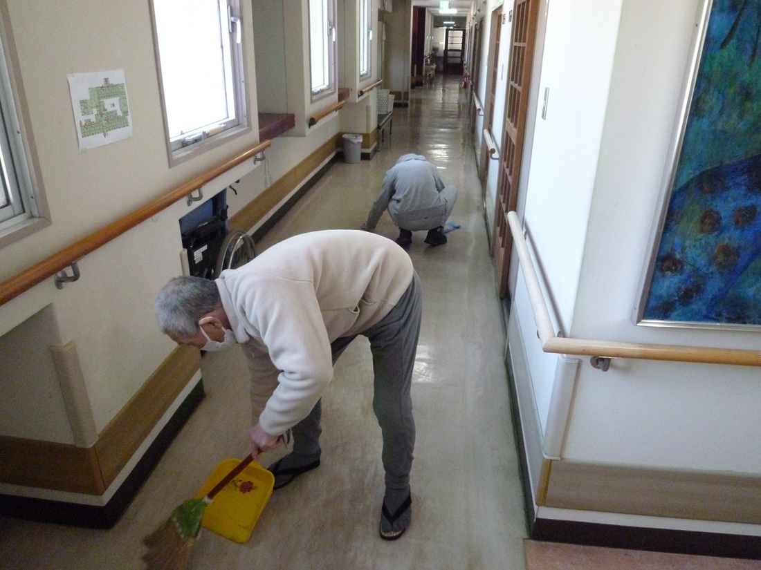 内外清掃として本日は廊下を中心に入所者様・職員にて清掃を行いました! 普段手が届きにくい場所も協力して行い、施設内がピカピカになりました✨